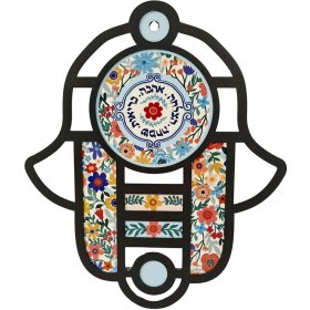 Ceramic Wall Hamsa with Hebrew Home Blessing Colorful Flower Design$12.63 -
