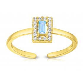 Gold Plated Sterling Silver Ring, Blue Zircon in Center Framed with Small Zircons$57.95 -