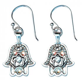 Silver Star of David Earrings with Hamsa by Ester ShahafSize: 1.5 x 1.5 cm / 0.5" x 0.5"$85.40 -