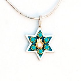 Blue Flower Star of David Pendant - Shahaf$66.50 -