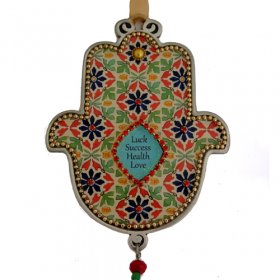 Iris Design Hamsa Wall Plaque, Beaded Roses and Birds – English Blessing Words$61.37 -