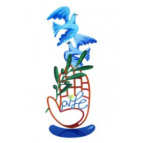 David Gerstein Free Standing Hamsa Sculpture Olives & Doves - Shalom Al YisraelHeight: 8.7"$130.95 -