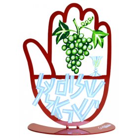 Still on the peace theme is an olive branch decoration with a delicate dove perched above the thumb. Another similar style Hamsa displays a charming bunch of luscious grapes alongside a Kiddush cup whose maroon color is associated with healing properties. Or what about the Hamsa combining doves and an olive branch with the word Shalom – Peace - engraved at the base?