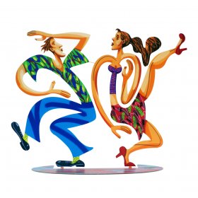 In this spirit, David Gerstein, celebrated Israeli artist, introduces us to the magic of movement with his exciting series of Dancers Sculptures. His Dancers are creative and colorful. The figures, young and not always beautiful, move feverishly to the beat of unheard music, losing themselves in the frantic dance experience. Creating an atmosphere of perpetual motion is Gerstein’s comment on the frenzied dance of life, as young people constantly twist, rock or swing in a desperate search for pleasure and satisfying life experiences.