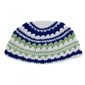 Frik Kippah Thick Weave of Crocheted White, Blue and Green Horizontal StripesSize: 9"$6.42 -