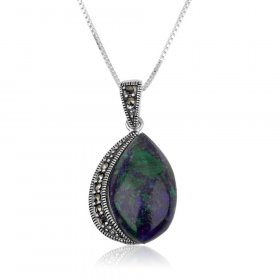 Sterling Silver Necklace with Pear Shape Eilat Stone in Curving Marcasite Frame$92.17 - $99.17 -